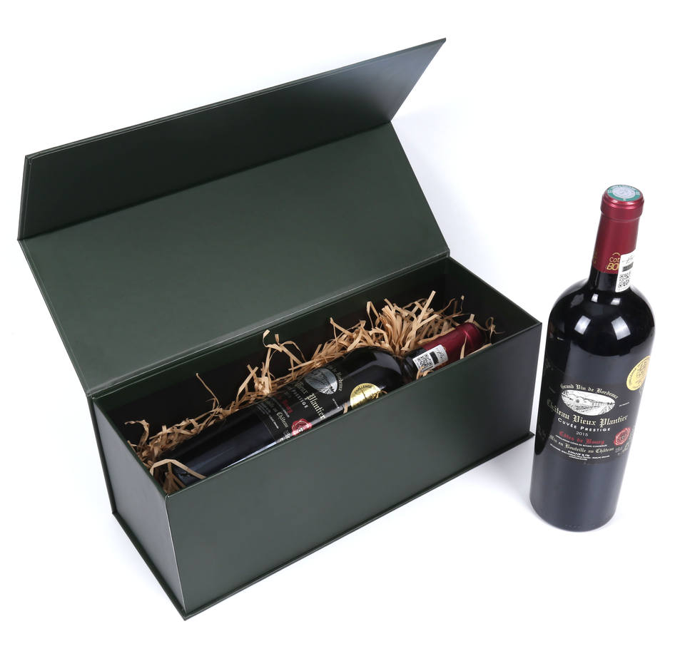 OEM หรูหราแบบพกพาของขวัญแชมเปญแอลกอฮอล์วิสกี้กล่องของขวัญแม่เหล็กบรรจุเหล้าวิสกี้ขวดแก้วไวน์แดงกล่องบรรจุภัณฑ์