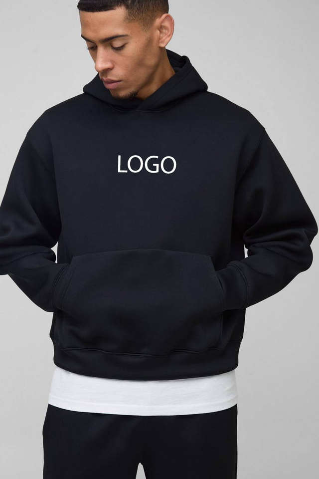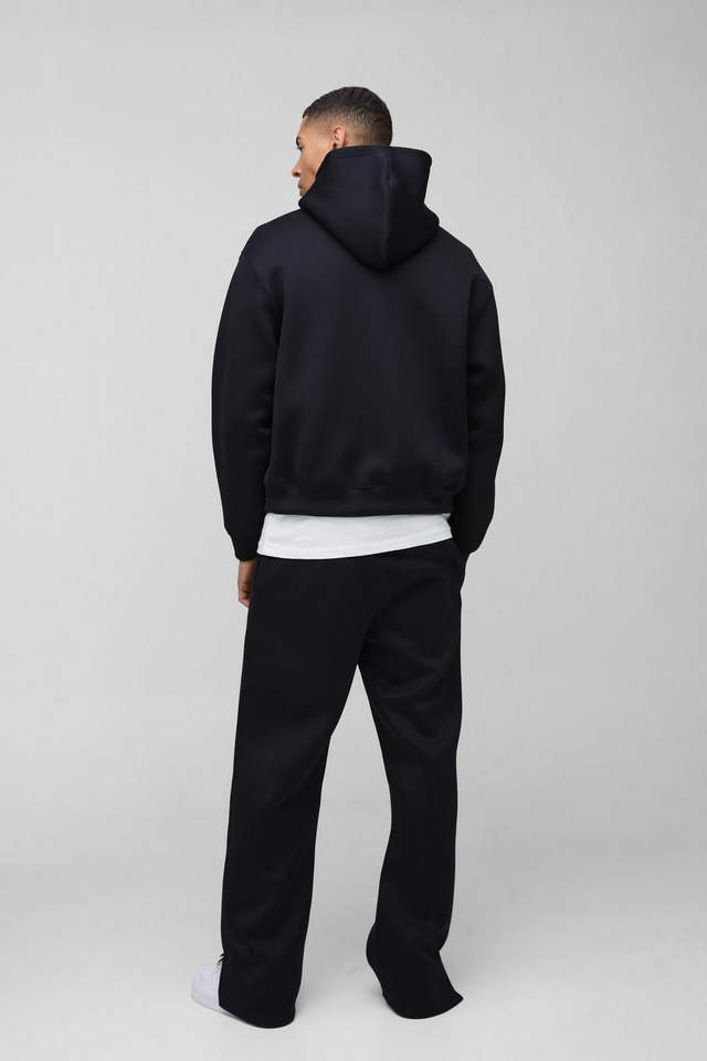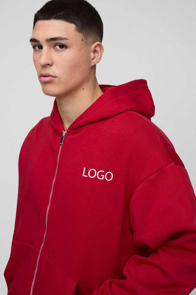 ชุดวอร์มแนวสตรีทใช้ได้ทั้งชายและหญิงมีซิปมีฮู้ดและกางเกงบูตทรงหลวมสีแดงโอเวอร์ไซส์ออกแบบโลโก้ได้ตามต้องการ