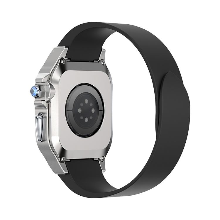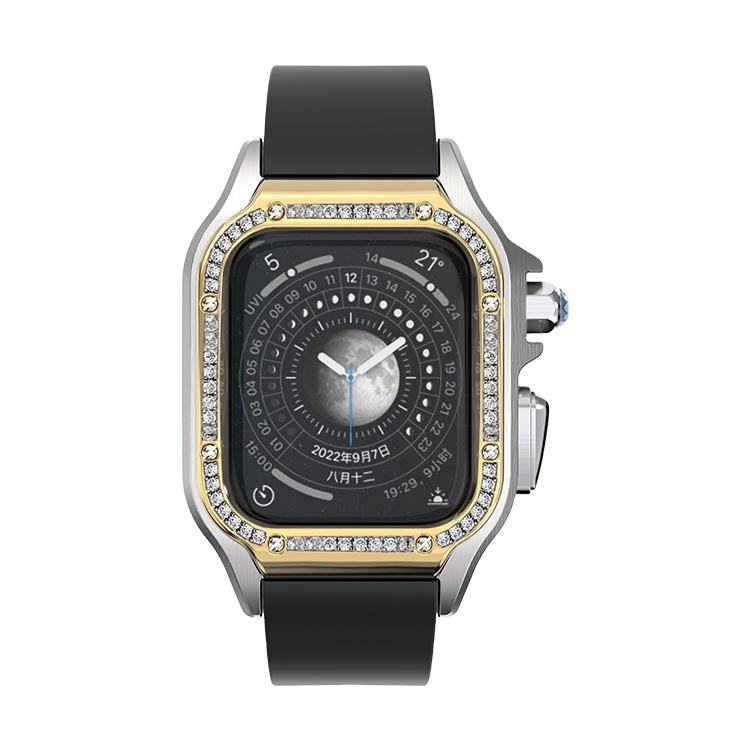 กล่องใส่นาฬิกาสแตนเลสสตีลหรูหราพร้อมฝาครอบนาฬิกาเพทายสำหรับ iWatch Series 7 41mm