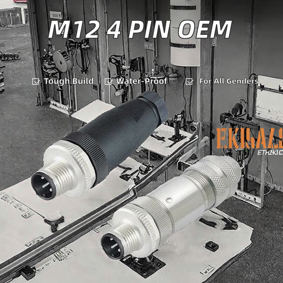 ขั้วต่อสายไฟอุตสาหกรรมแบบกันน้ำ OEM M12 4 ขา แบบตัวผู้และตัวเมีย สำหรับแผงควบคุม พร้อมหน้าสัมผัสทองแดงสำหรับส่งกำลัง