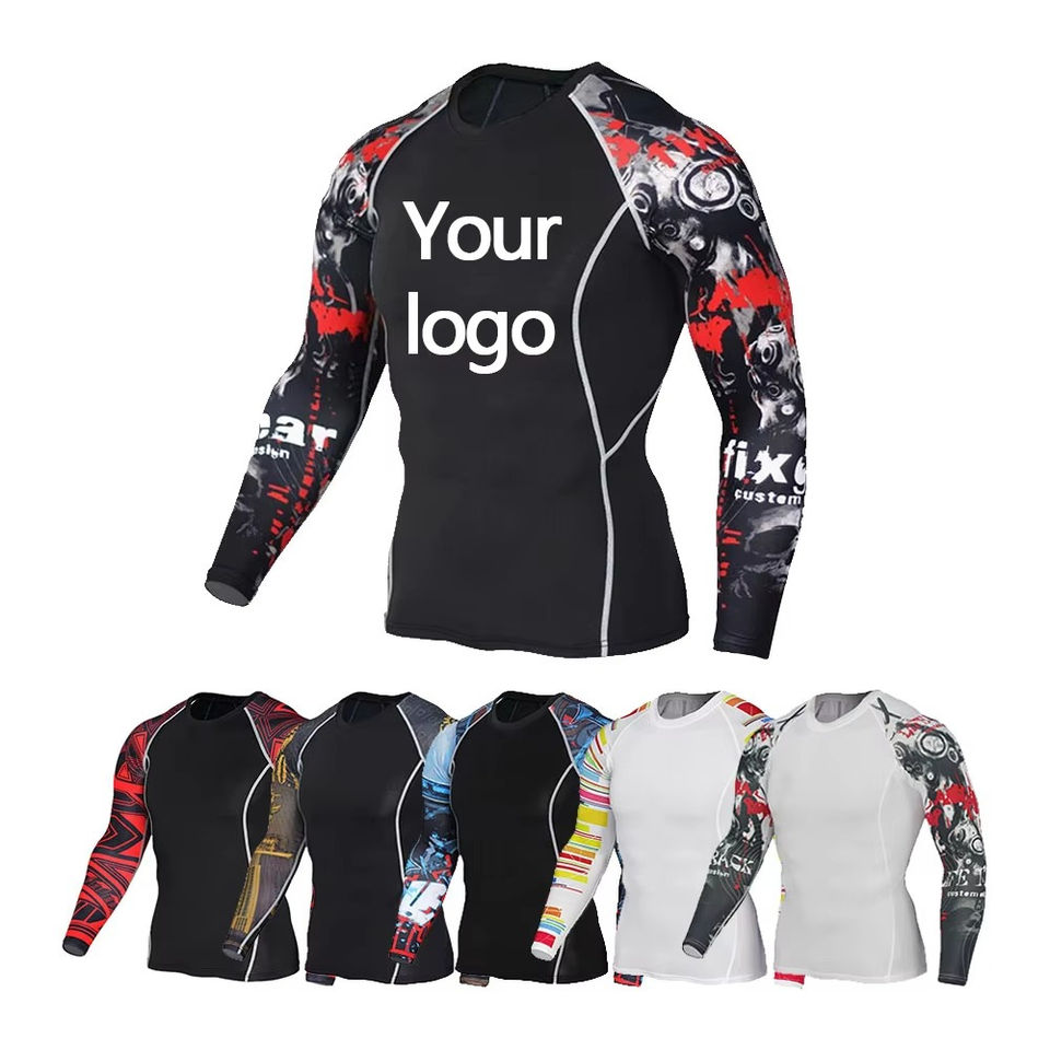 ชุดรัดกล้ามเนื้อสำหรับผู้ชาย MMA OEM แขนยาว/แขนสั้น แบบซับลิเมชั่น สำหรับกีฬา BJJ ชุดออกกำลังกาย ชุดยิวยิตสู มวยไทย