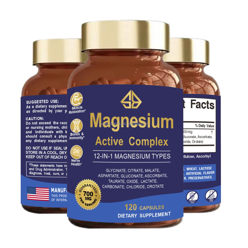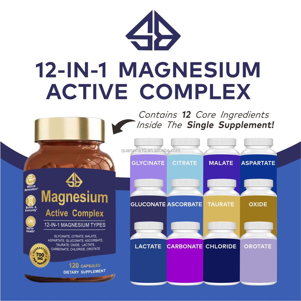 แมกนีเซียมคอมเพล็กซ์ OEM 12 in 1 700 มก. เพิ่มพลังงาน บำรุงความจำและการนอนหลับ ดูแลสุขภาพกระดูก 120 เม็ด สำหรับผู้ใหญ่