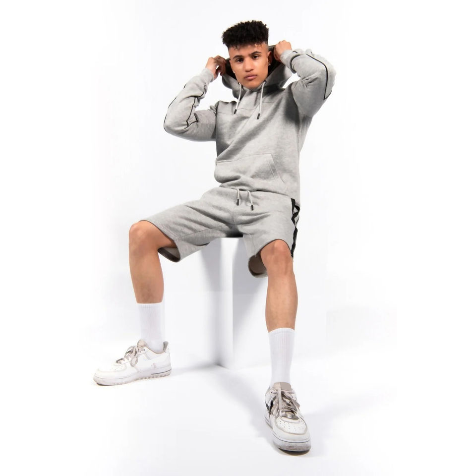 ชุดวอร์มผู้ชายแบบมีฮู้ดและกางเกงขาสั้น ผลิตโดย OEM ระบายอากาศได้ดี ทันสมัย ใส่ได้ทั้งชายและหญิง แห้งเร็ว พร้อมโลโก้ตามสั่ง