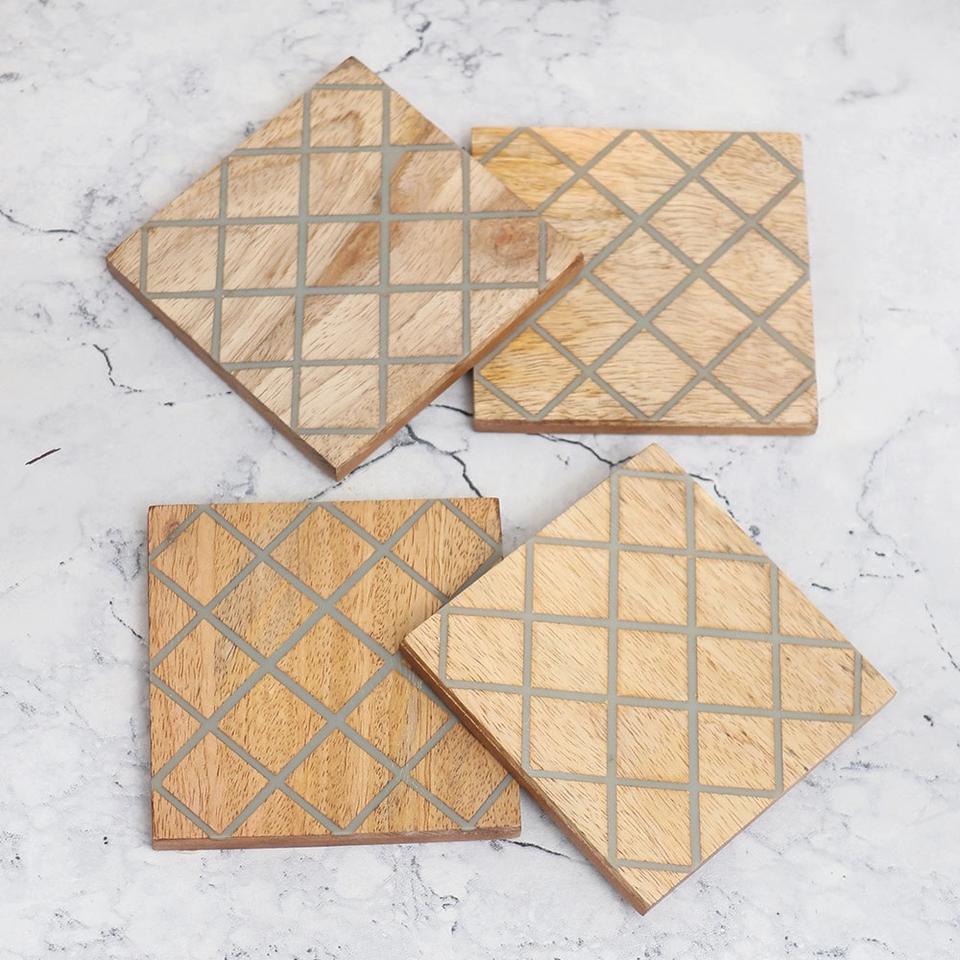 ผู้ผลิต OEM ผลิตที่รองแก้วทรงกลมลายหินอ่อนสีเขียว ดีไซน์หรูหรา คุณภาพสูง โครงโลหะ ชุด 4 ชิ้น