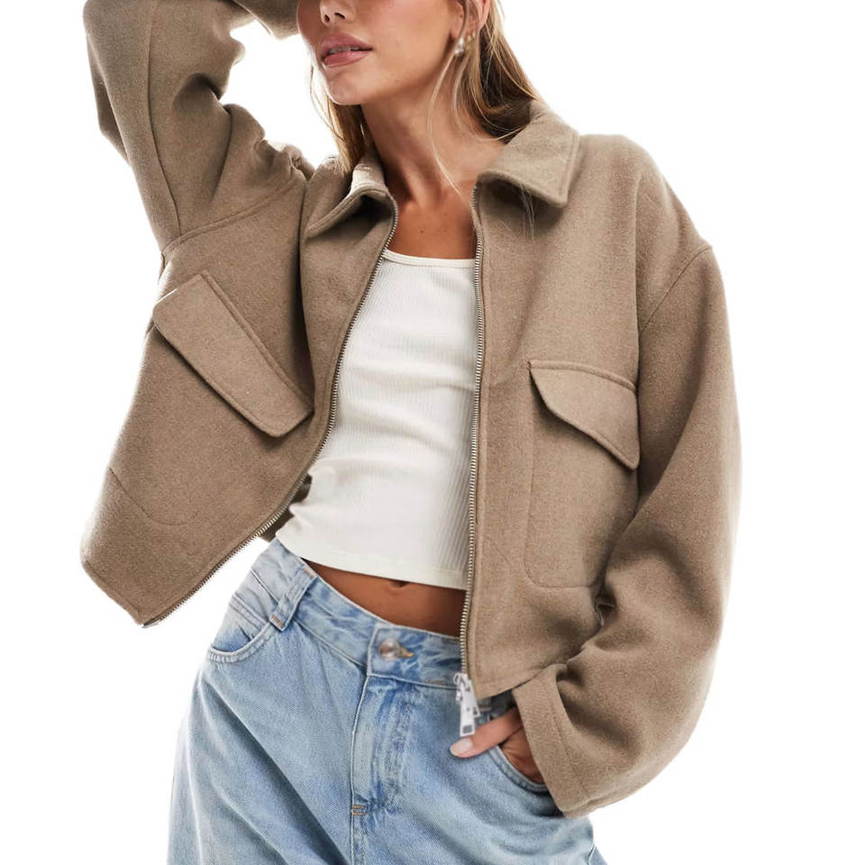 เสื้อโค้ทตัวสั้นสำหรับผู้หญิงดีไซน์ใหม่ล่าสุดเสื้อโค้ทตัวยาวสำหรับผู้ใหญ่ขนาดสั้น