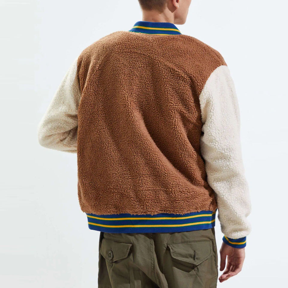 แจ็คเก็ตขนแกะขั้วโลกสำหรับผู้ชายเสื้อหนาวบอมเบอร์แบบรูดซิปขึ้นเอง