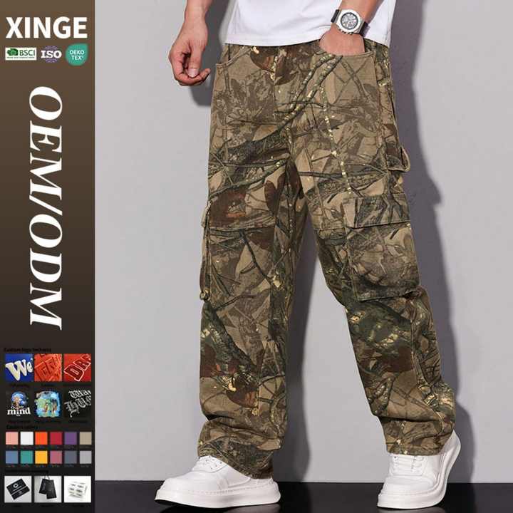 ผู้ผลิต OEM กางเกงวอร์มลายพรางแบบซักล้างคุณภาพสูง กางเกงวอร์มลำลองทรงขาบานสำหรับผู้ชาย