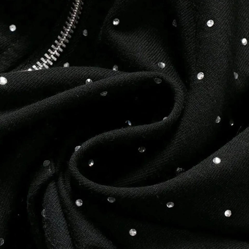 ผู้ผลิต OEM เสื้อฮู้ดดี้แฟชั่นประดับเพชรน้ำหนักมาก ออกแบบเองได้ ซิปหน้า ผ้าฝ้ายผสม สำหรับฤดูหนาว