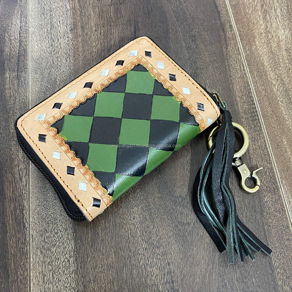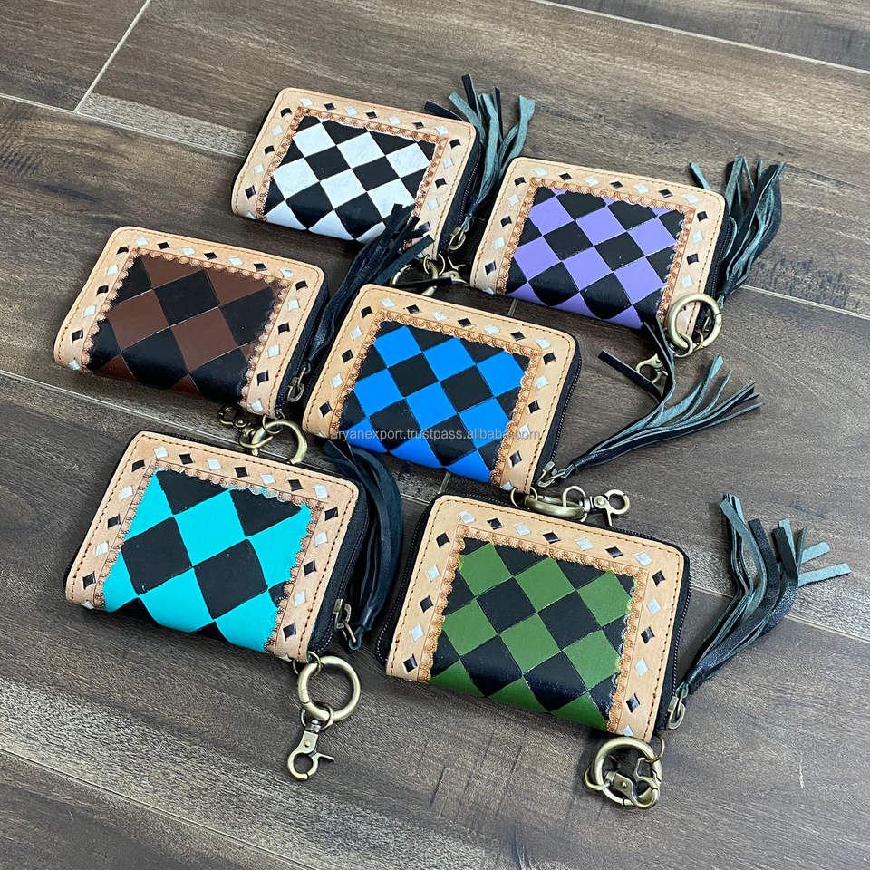 กระเป๋าใส่เหรียญหนังแท้ลายตารางหมากรุก งานแฮนด์เมด ผลิตโดย OEM พร้อม RFID ดีไซน์ทันสมัย ความจุเยอะ ขนาดมินิ พร้อมพู่ห้อย สำหรับผู้หญิง