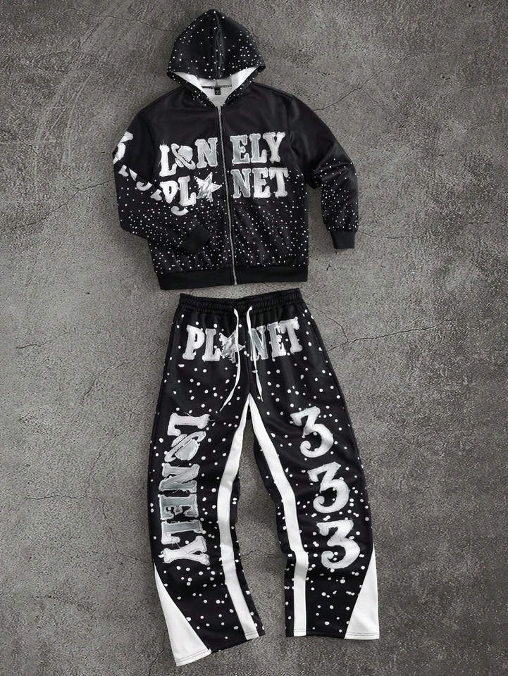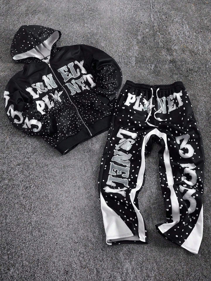 ชุดแทรคสูทสตรีทแวร์ผ้าฝรั่งเศสเทอร์รี่คุณภาพพรีเมียม 500 GSM ปักลายและประดับคริสตัล ผลิตโดย OEM