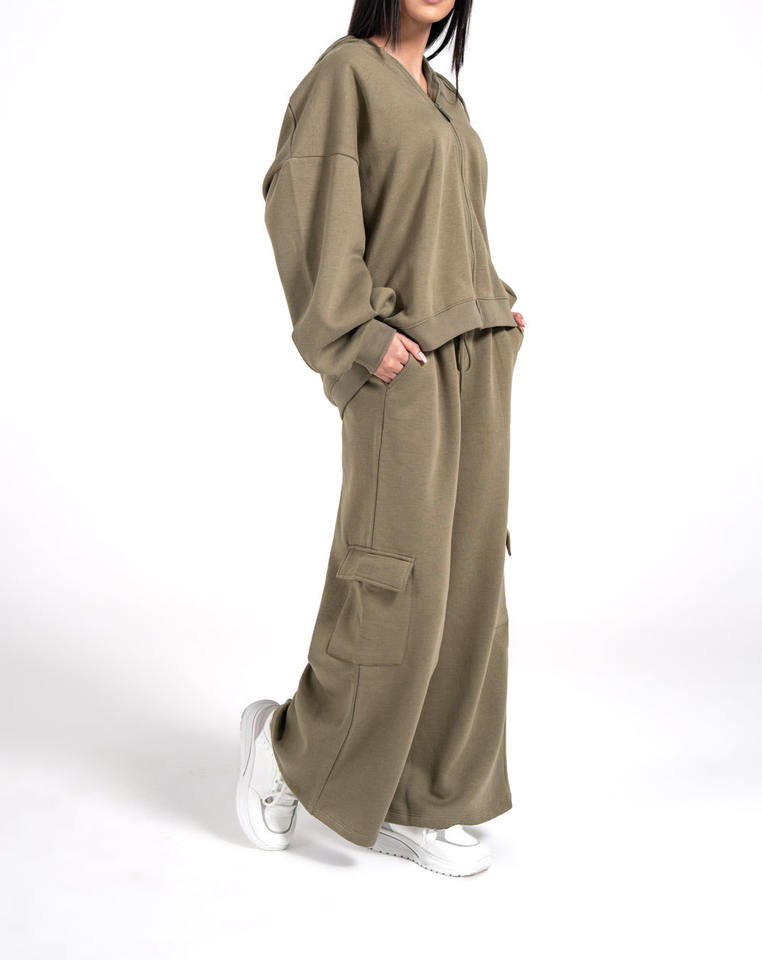 ผู้ผลิต OEM เสื้อฮู้ดดี้แขนยาวแบบมีซิป สีพื้น ทรงโอเวอร์ไซส์ สไตล์เกาหลี ชุดวอร์มลำลองสำหรับผู้หญิง