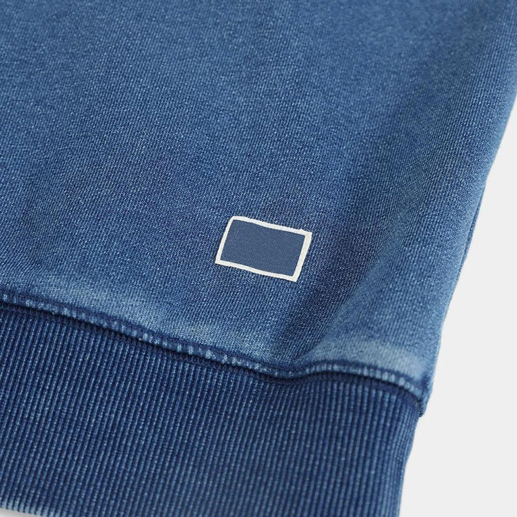 เสื้อสเวตเตอร์คอกลมแขนสั้นผ้าฝ้ายผสมพิมพ์โลโก้แบบย้อนยุค
