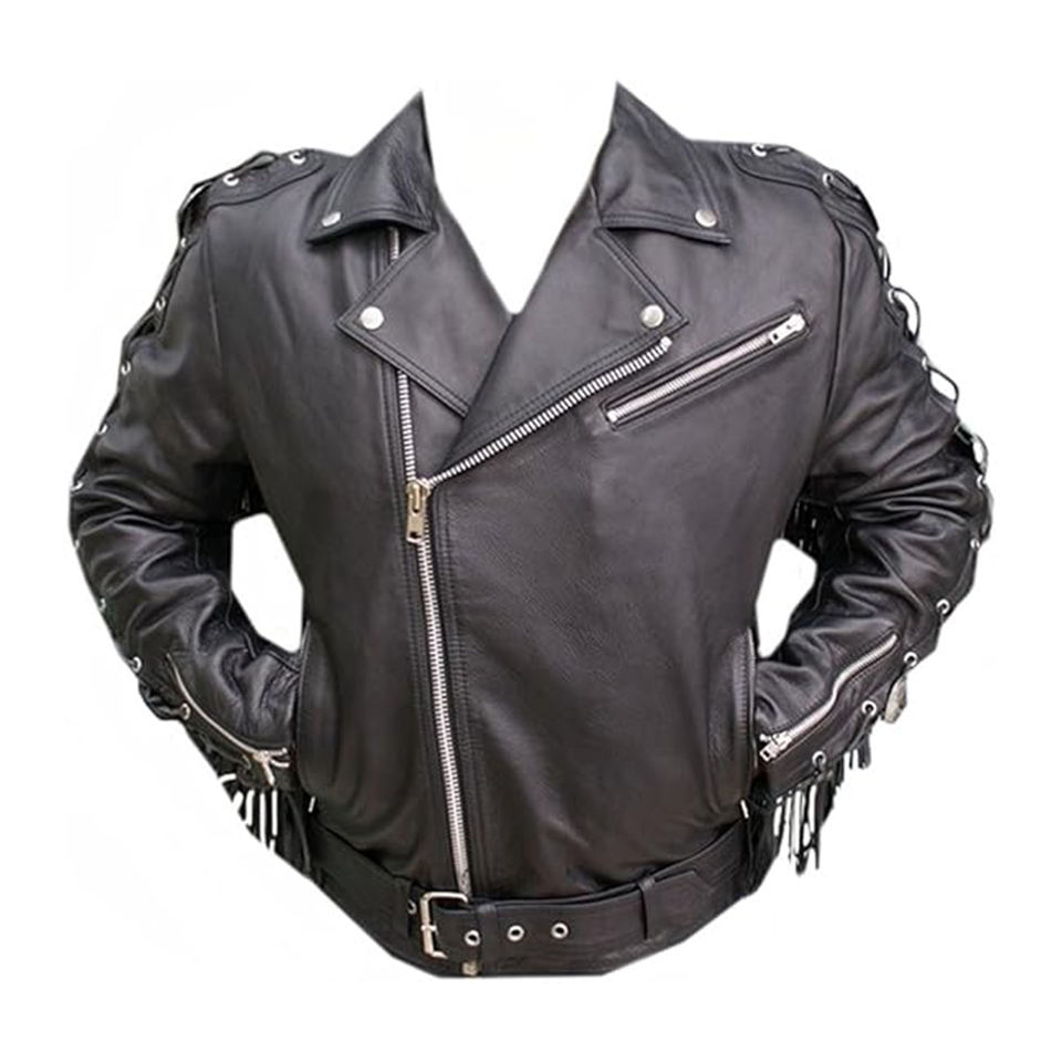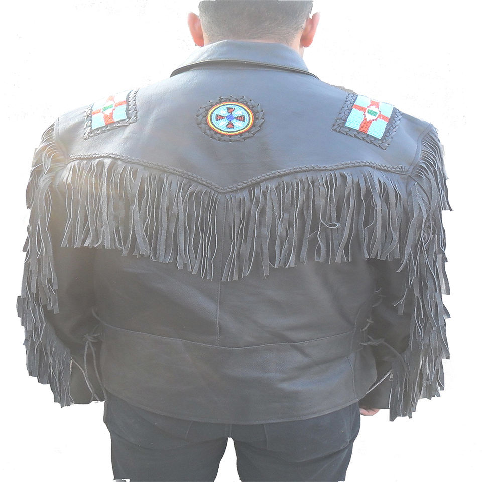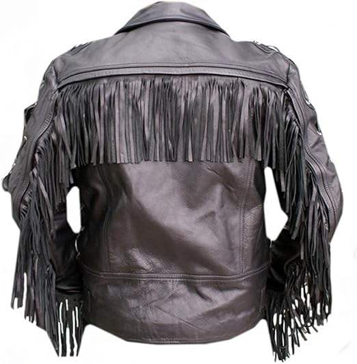 แจ็กเก็ตหนังสไตล์ตะวันตกสำหรับผู้ชายเสื้อประดับพู่สไตล์วินเทจสินค้า2024