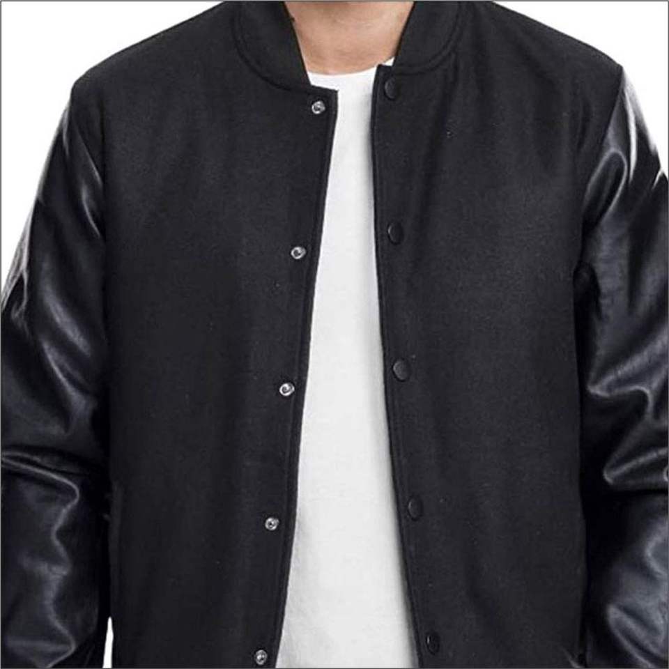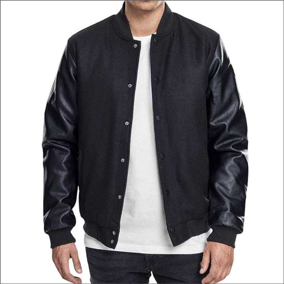 แจ็คเก็ตวาร์ซิตี้โลโก้สั่งทำจากผู้ผลิต OEM คุณภาพสูง หนังพรีเมียมสีดำเรียบ แจ็คเก็ตแขนหนังอุ่นๆ ไซส์ใหญ่สำหรับผู้ชาย