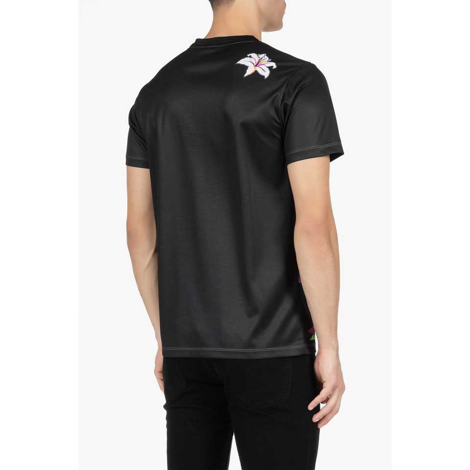 เสื้อยืดสีดำ Morbidelli คุณภาพเยี่ยมจากผู้ผลิต OEM แห้งเร็ว 100% โพลีเอสเตอร์ ไม่หดตัว ลาย 'Flags Flower' สำหรับโปรโมชั่น