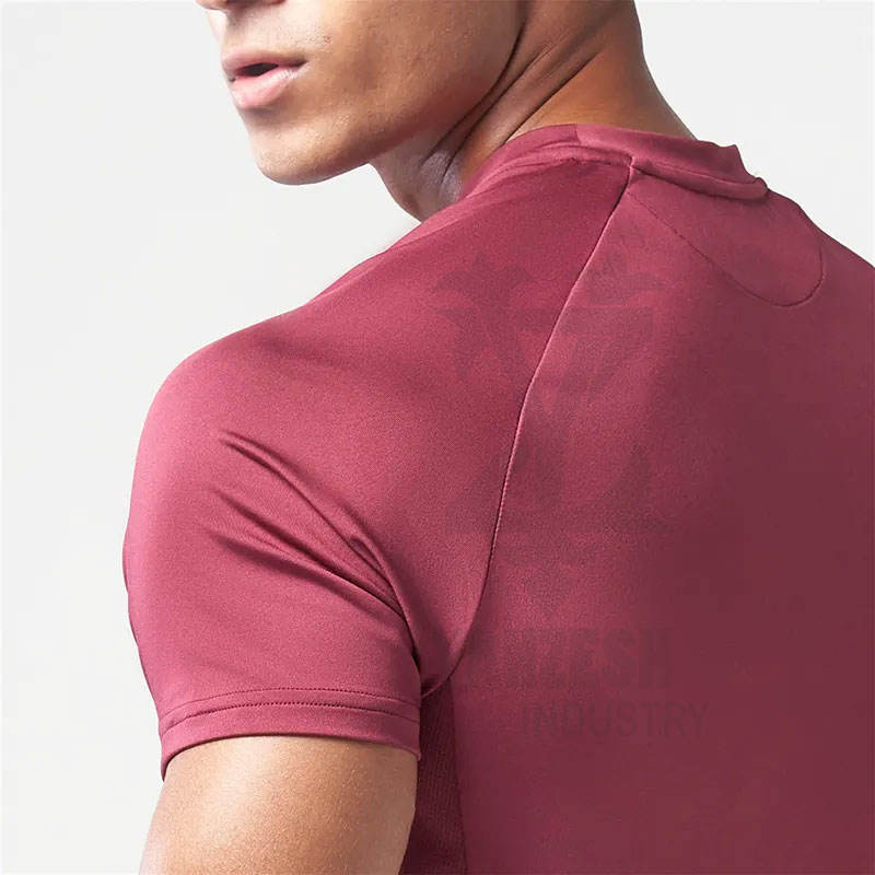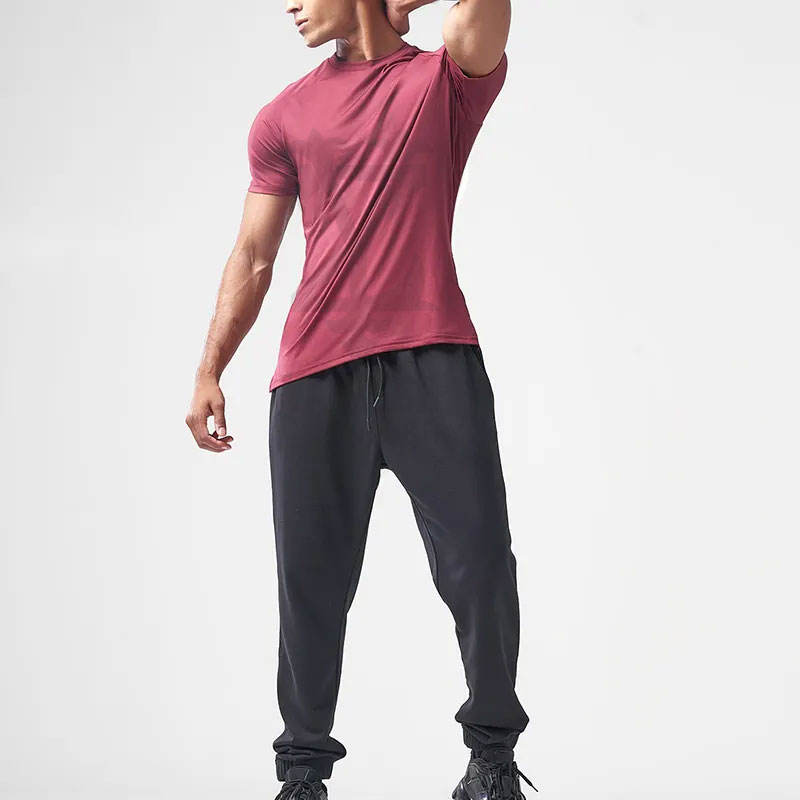 เสื้อยืดกีฬาผ้าโพลีเอสเตอร์สำหรับผู้ชายทรงสลิมฟิตแห้งเร็วผ้าคอตตอน/ใยไม้ไผ่ถัก