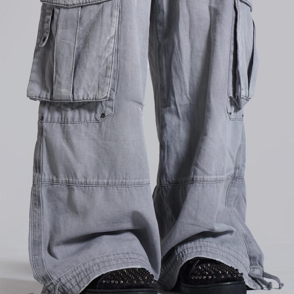 กางเกงคาร์โก้สไตล์เรโทรสำหรับผู้ชายจากผู้ผลิต OEM กางเกงลำลองทรงหลวมแบบสั่งทำพิเศษ กางเกงโอเวอร์ไซส์ผู้ชายแบบหลวมหลายกระเป๋า