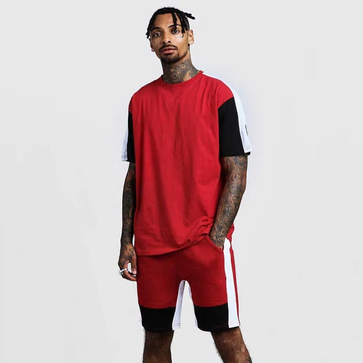 ชุดเสื้อยืดและกางเกงขาสั้นผู้ชายแบบถักสไตล์วินเทจจากผู้ผลิต OEM เป็นมิตรกับสิ่งแวดล้อม 2 ชิ้น ชุดลำลองฤดูร้อน ผลิตจากโพลีเอสเตอร์/คอตตอน