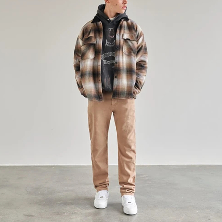 เสื้อเชิ้ตผ้าสักหลาดแขนยาวสำหรับผู้ชายเสื้อผ้าลำลอง100% ลายสก็อตมีกระดุมดีไซน์คลาสสิกสำหรับฤดูหนาวผลิต OEM