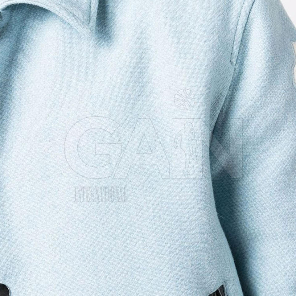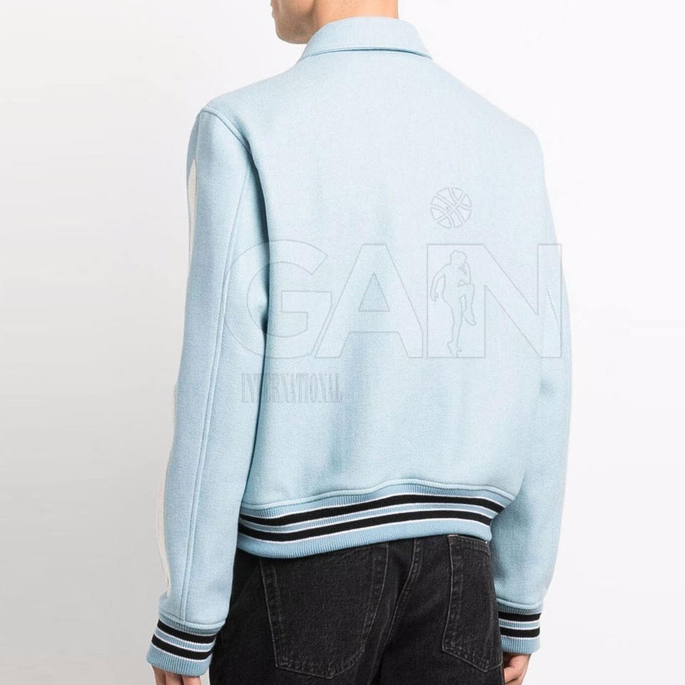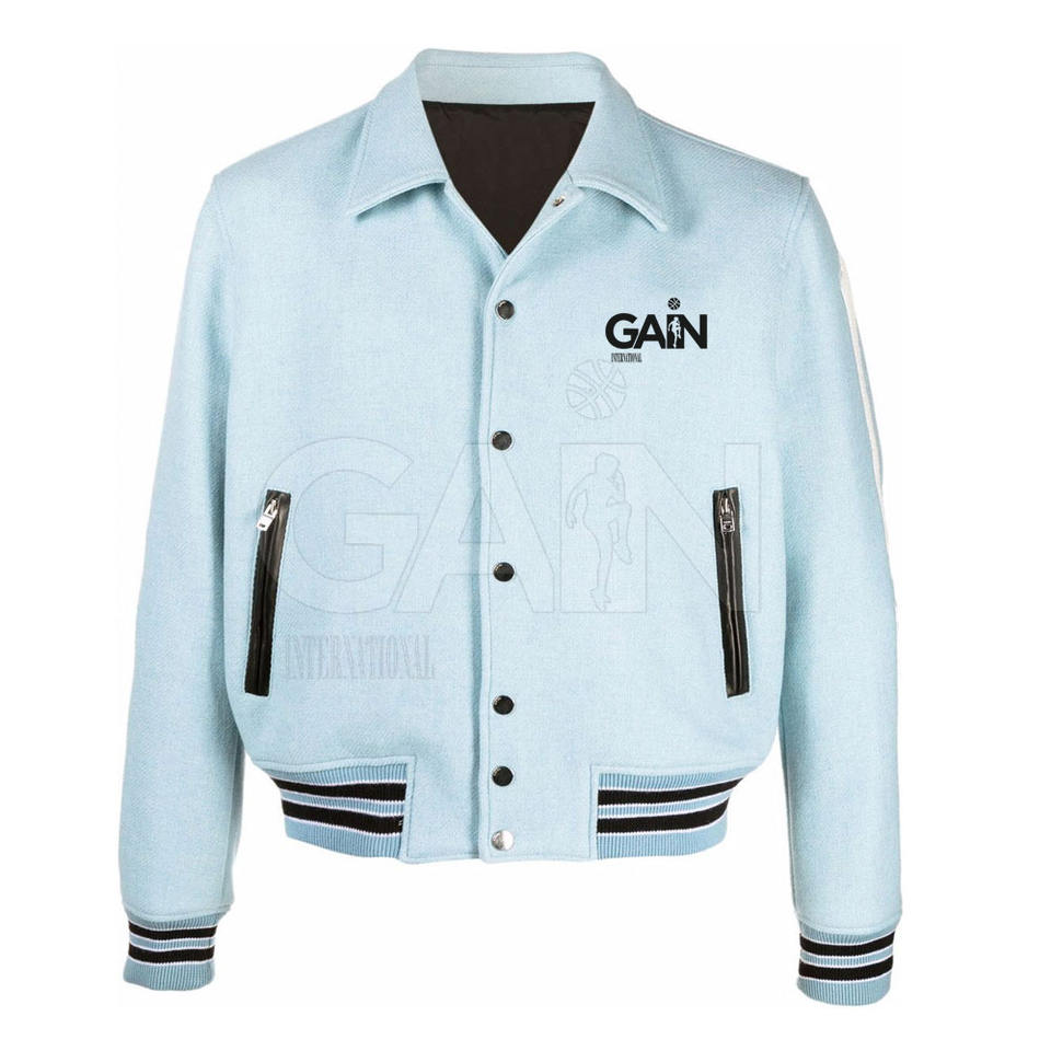 แจ็กเก็ตเลตเตอร์แมนสำหรับผู้ชาย OEM ผ้าขนสัตว์และผ้าฝ้ายมีกระดุมสแน็ปปิดด้านหน้า