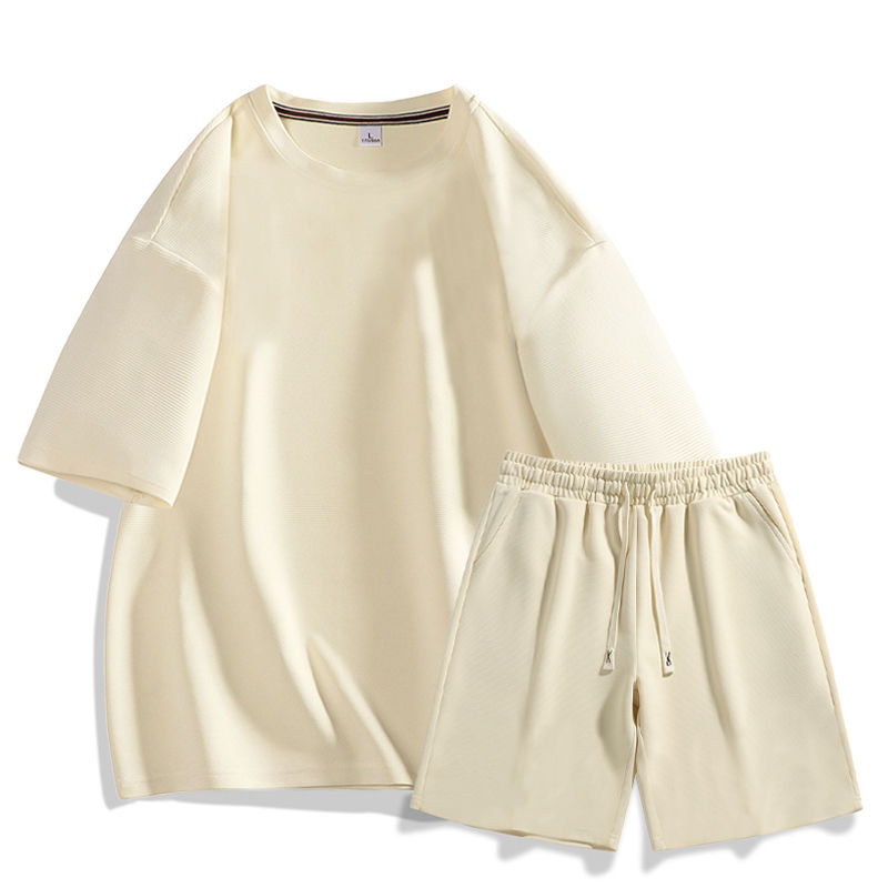 ชุดเสื้อยืดวินเทจสำหรับผู้ชาย OEM กางเกงขาสั้นปักข้างถนนทรงสูงผ้าคอตตอนระบายอากาศได้สำหรับฤดูร้อน