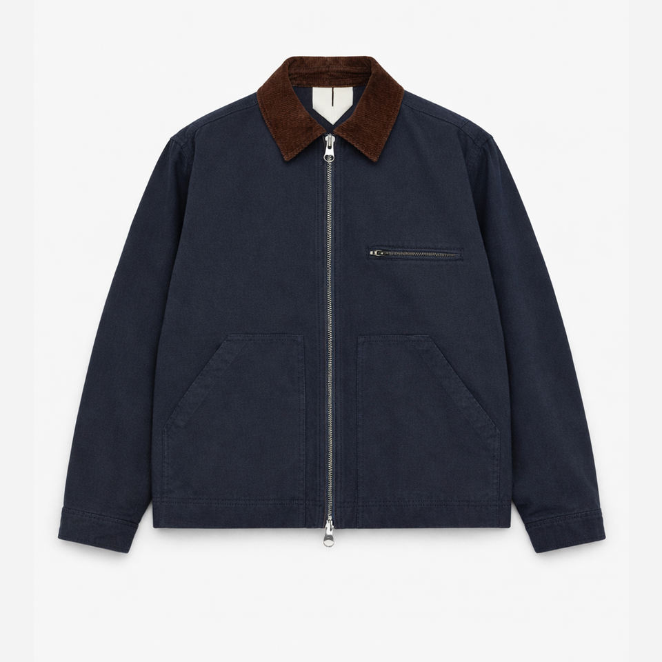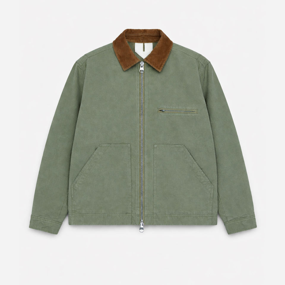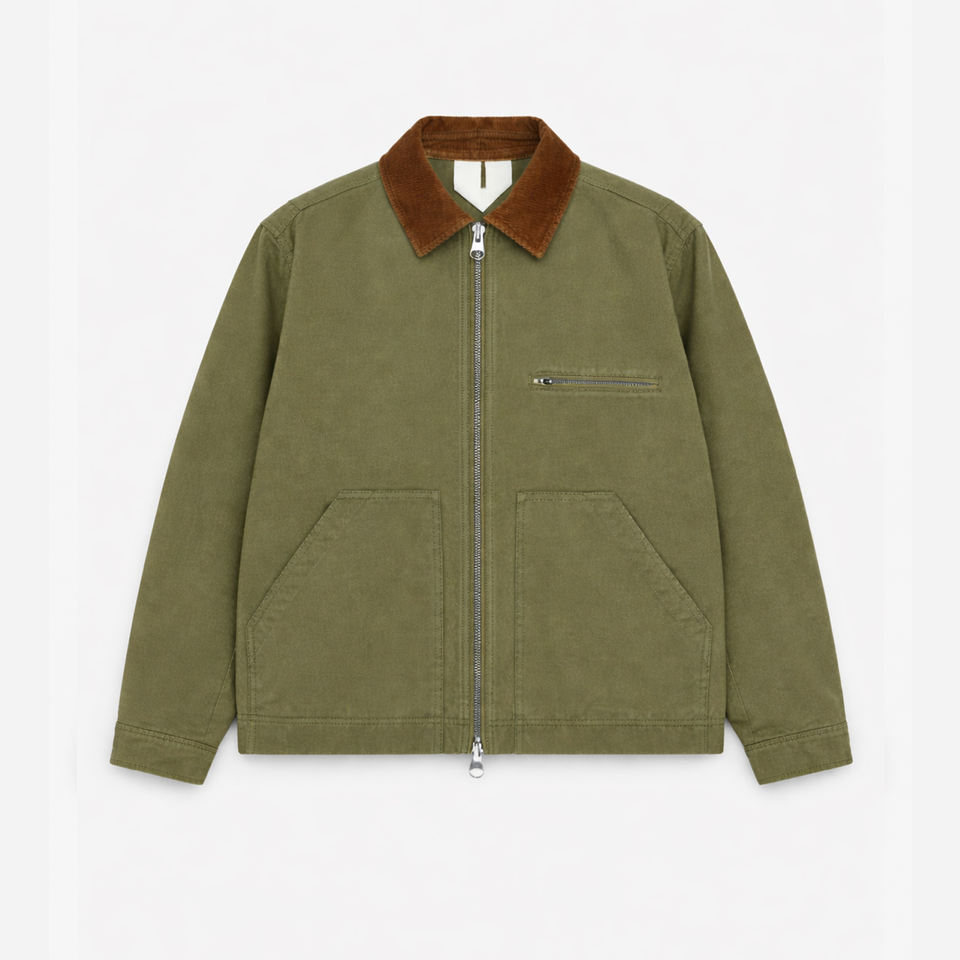 เสื้อแจ็คเก็ตผ้าแคนวาสสีแทนสำหรับผู้ชาย OEM พร้อมปกคอร์ดูรอย ซิปแบบสั่งทำพิเศษ เสื้อแจ็คเก็ตอเนกประสงค์ลำลอง