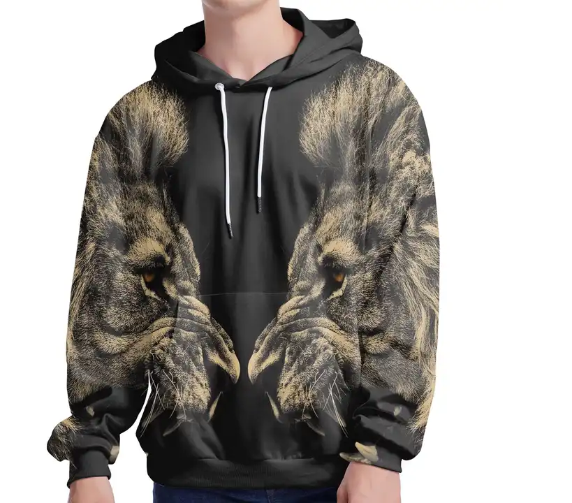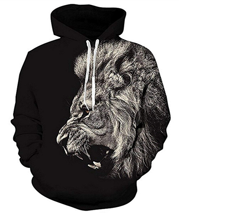 เสื้อฮู้ดแขนยาวสำหรับผู้ชายเสื้อมีฮู้ดพิมพ์ลายสิงโตแขนยาวพิมพ์ลาย3D