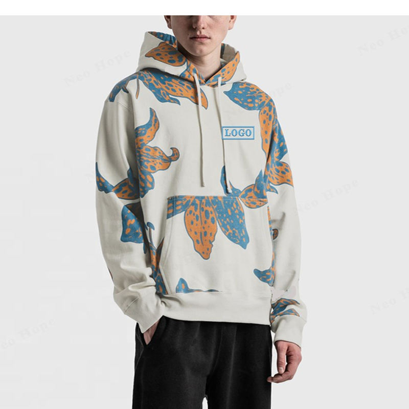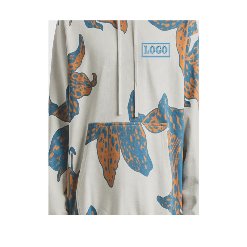 เสื้อฮู้ดดี้ผู้ชาย OEM ผ้าฝ้ายฟลีซ 100% เป็นมิตรกับสิ่งแวดล้อม แขนยาว พิมพ์โลโก้ตามสั่ง ทรงปกติ ปักลาย