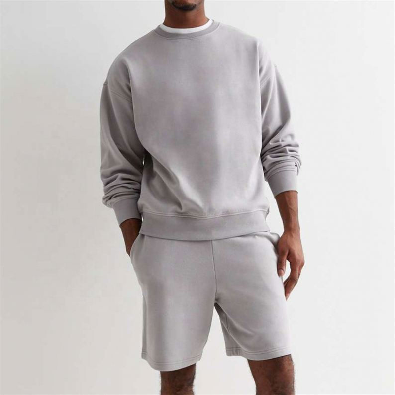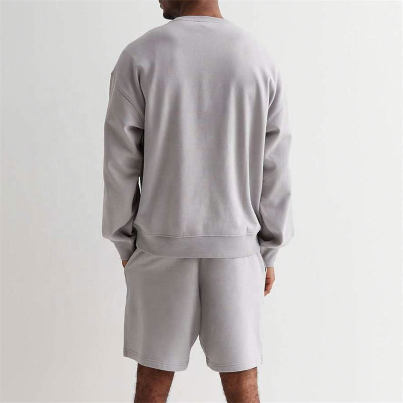 ชุดเซ็ต 2 ชิ้น เสื้อสเวตเชิ้ตแขนยาวคอกลมทรงโอเวอร์ไซส์ผ้าถักระบายอากาศสำหรับผู้ชาย OEM รุ่นลำลอง สีสันตามสั่งสำหรับฤดูใบไม้ร่วง ผลิตจากผ้าฝ้าย 100%