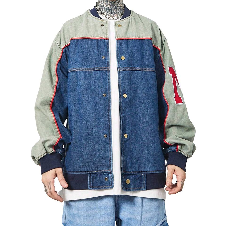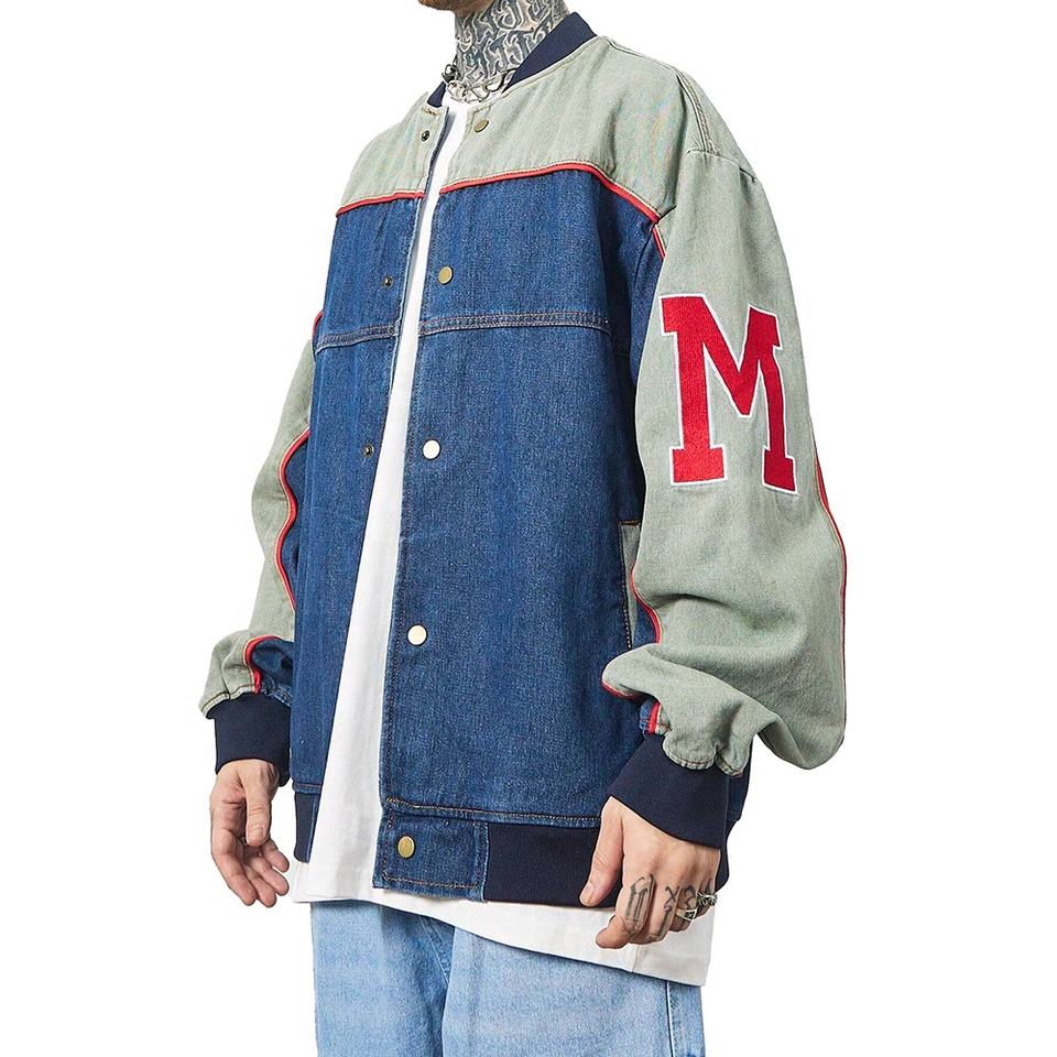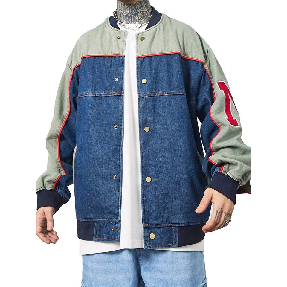 แจ็กเก็ตยีนส์งานเย็บปะแบบลำลองของผู้ชายงาน OEM คอลเลกชันฤดูหนาวขายดีดีไซน์ล่าสุด