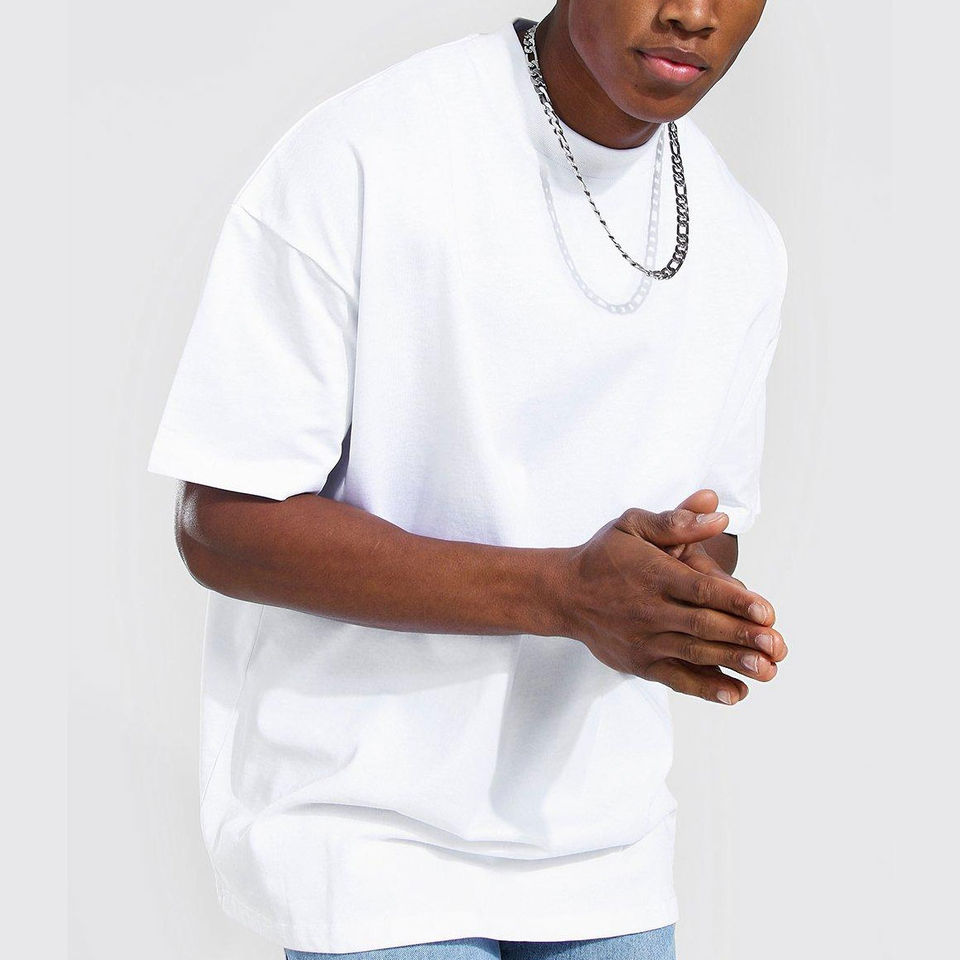OEM เสื้อยืดผ้าฝ้ายผู้ชายพิมพ์ลายแบบกำหนดเองริงเกอร์เปล่าพร้อมคอจำลองและเสื้อผ้าฤดูใบไม้ผลิทรงโอเวอร์ไซส์