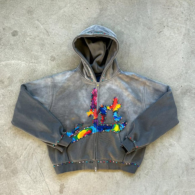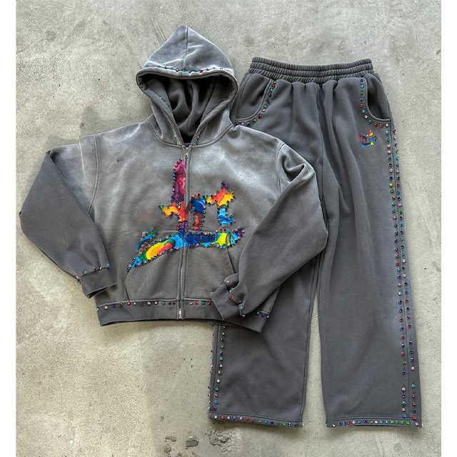 OEM ชุดเสื้อมีฮู้ดสำหรับผู้ชายปักลายด้วยพลอยเทียมปักลายออกแบบได้ตามต้องการชุดวอร์มกันเหงื่อสำหรับฤดูหนาว