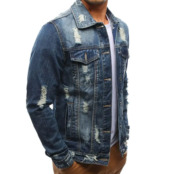 แจ็กเก็ตยีนส์สำหรับผู้ชายเสื้อคลุมเดนิมแบบมีกระดุมแบบลำลองสำหรับฤดูใบไม้ร่วง