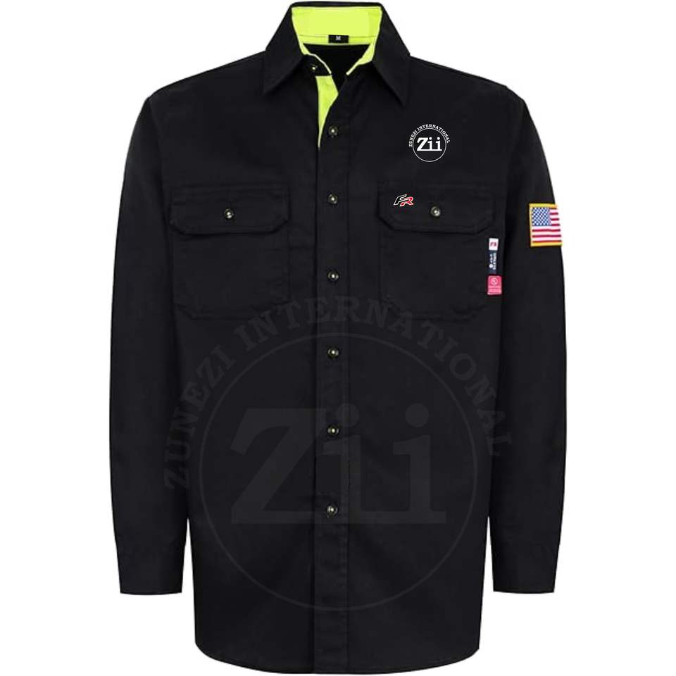 OEM Unisex FR Shirts Long Sleeve Solid Color Plus Size Cotton Breathable Flame Resistant NFPA2112 Work Shirt