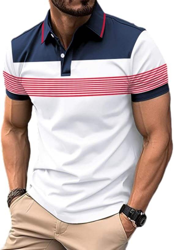 เสื้อโปโลผู้ชายสีบล็อกสีเสื้อยืดแขนสั้นลำลองเสื้อกอล์ฟดูดซับความชื้น