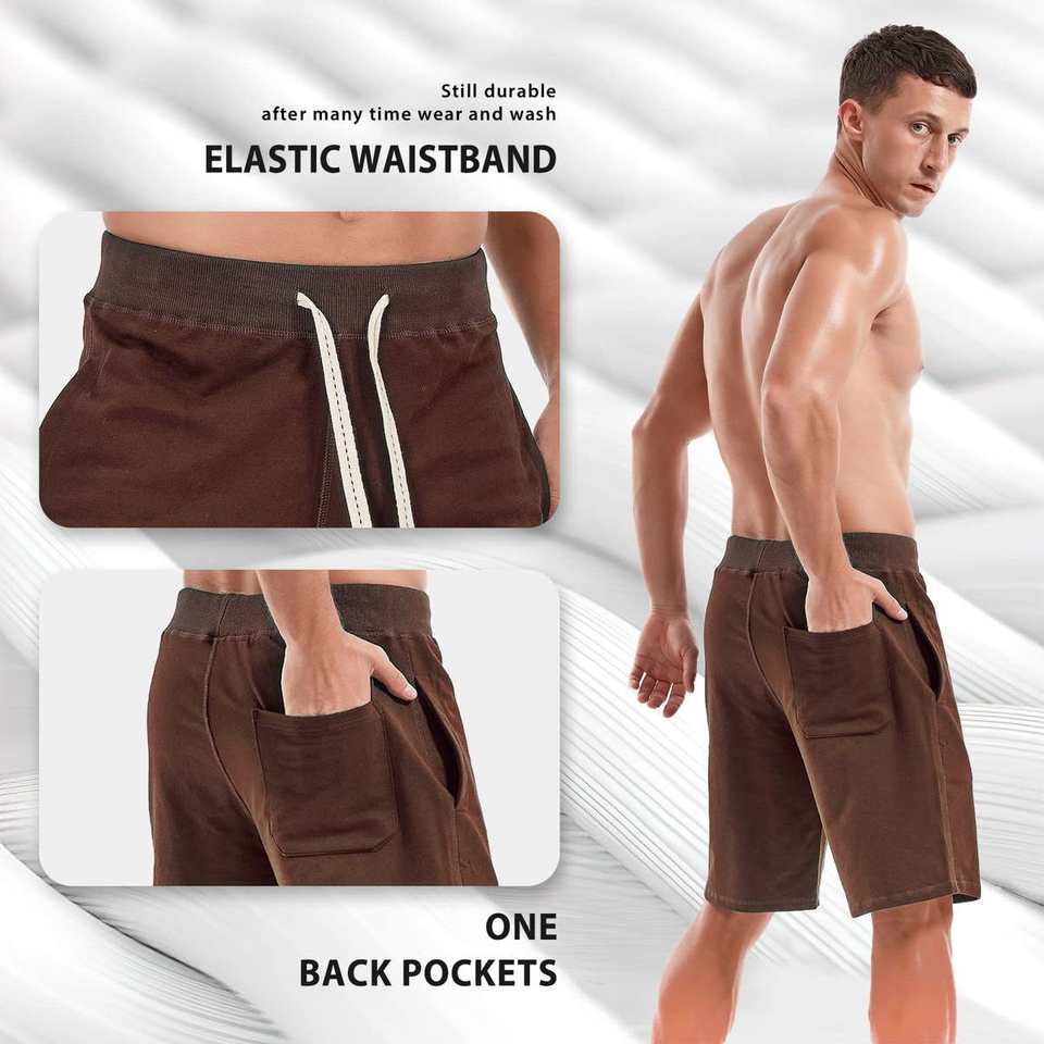 กางเกงขาสั้นกีฬาผู้ชาย OEM ผ้าฝ้ายเนื้อนุ่มสบาย แบบสวมใส่สบาย ผลิตในปากีสถาน ลายเรียบ