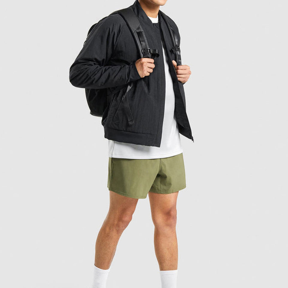 กางเกงขาสั้นออกกำลังกายผ้าโพลีเอสเตอร์สำหรับผู้ชาย OEM กางเกงออกกำลังกายผ้า100% แห้งเร็วเอวกลางกันรอยยับสำหรับสตรีทแบบมีสไตล์