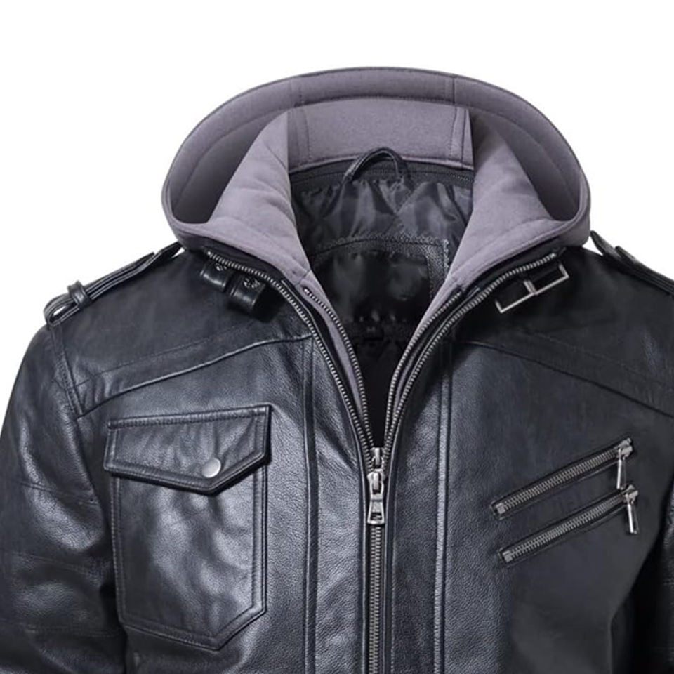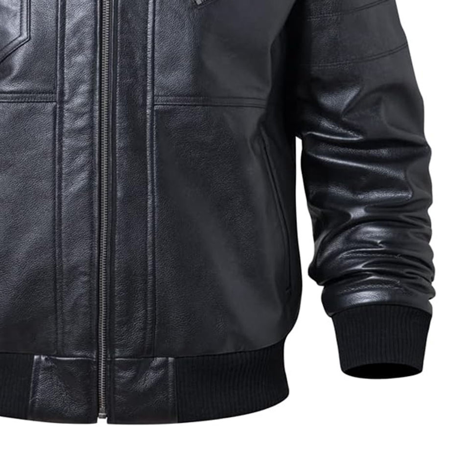 แจ็กเก็ตหนังลำลองคุณภาพสูงของผู้ชาย OEM พร้อมโลโก้ปักปิดซิปตกแต่งลายตัวอักษรสำหรับฤดูใบไม้ร่วง