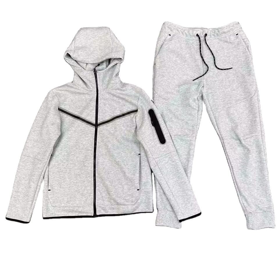 ชุดวอร์มเทคฟลีซแขนยาวแบบซิปหน้าสำหรับผู้ชาย OEM แห้งเร็ว ระบายอากาศได้ดี รับทำโลโก้ตามสั่ง ไซส์ขายส่ง ไซส์พลัส ชุดเซ็ตสีพื้น