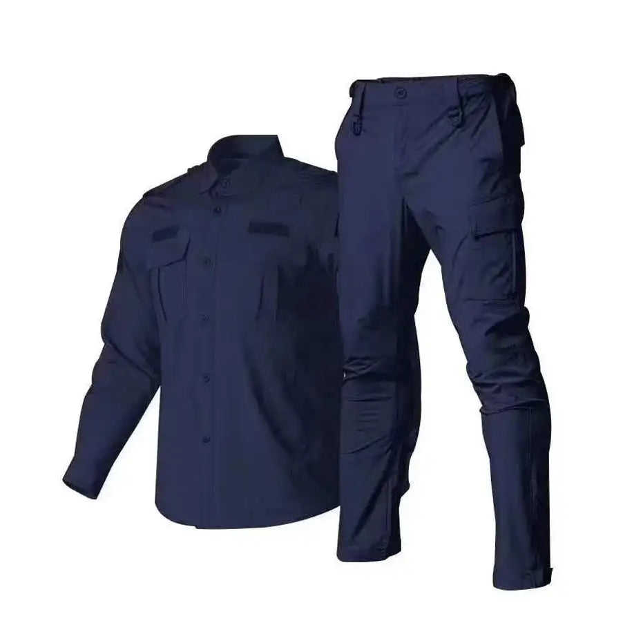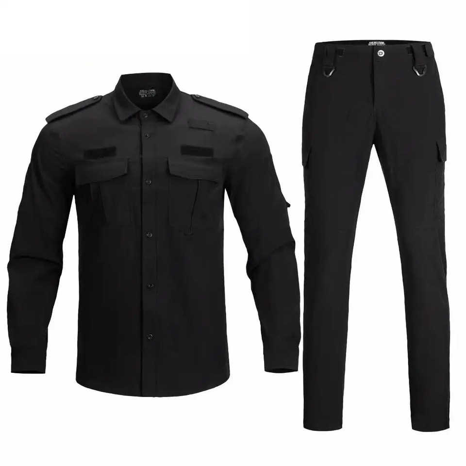 ชุดยูนิฟอร์มทหารสีกรมท่าสำหรับผู้ชาย OEM ผลิตจากโพลีเอสเตอร์ เสื้อแขนยาวและกางเกงขายาว สำหรับงานรักษาความปลอดภัย