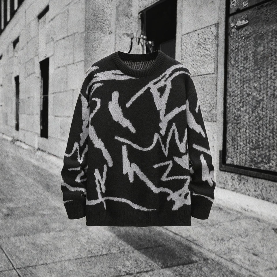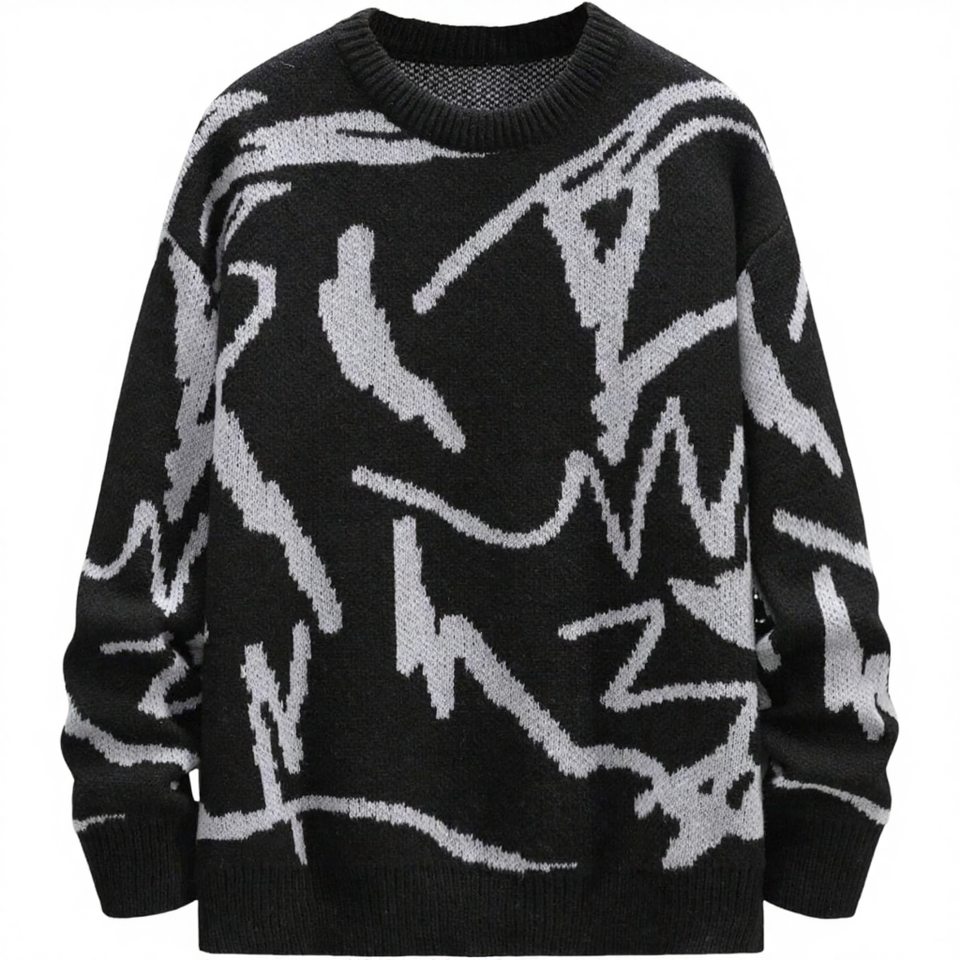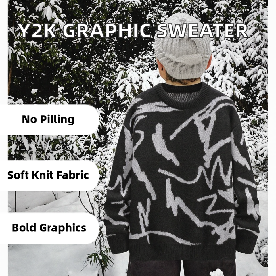 เสื้อสเวตเตอร์ไหมพรมแขนยาวทรงโอเวอร์ไซส์สำหรับผู้ชาย สไตล์ Y2K ลายกราฟิกลำลอง ผลิตโดย OEM ผลิตจากโพลีเอสเตอร์ 100% ป้องกันการเกิดขุย เหมาะสำหรับฤดูหนาว