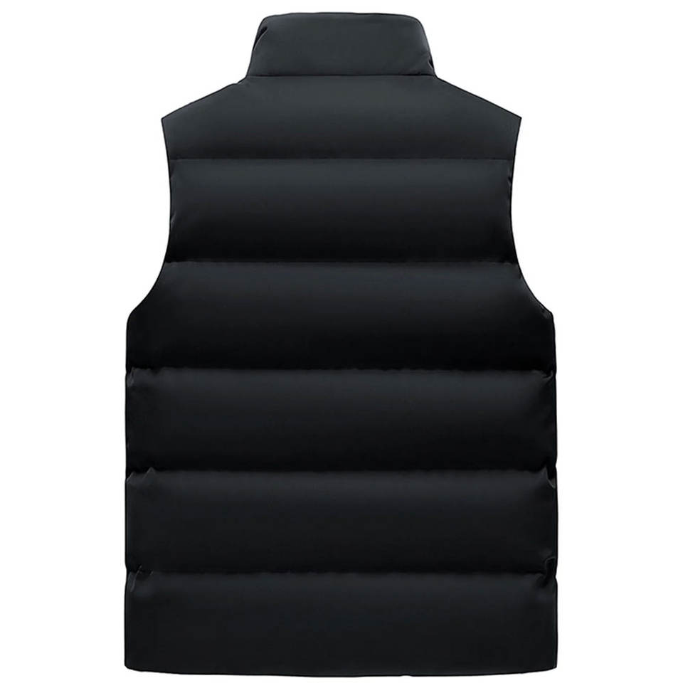 เสื้อกั๊กพัฟเฟอร์บุผ้าฟลีซสำหรับผู้ชาย แบรนด์ OEM สำหรับฤดูหนาว อุ่นสบาย คอตั้ง ซิปเต็มตัว ไม่มีแขน ระบายอากาศได้ดี คุณภาพสูง