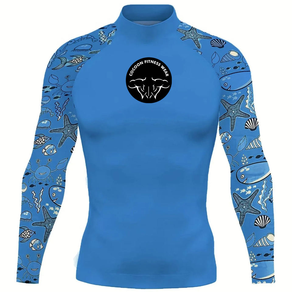 เสื้อรัดกล้ามเนื้อผู้ชาย OEM สำหรับ MMA BJJ มวย คิกบ็อกซิ่ง แขนยาว พิมพ์ลายด้วยความร้อน ระบายอากาศ ป้องกันรังสียูวี แห้งเร็ว UPF50 2026
