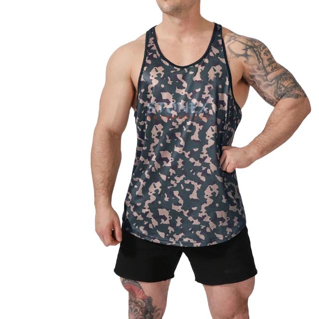 เสื้อกล้ามออกกำลังแขนกุดสำหรับผู้ชายเสื้อกล้ามโพลีเอสเตอร์ด้านหลังตัว Y ระบายอากาศได้ดีสีพื้นพิมพ์ลายสำหรับวิ่งฤดูร้อน