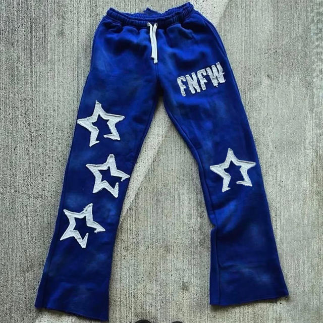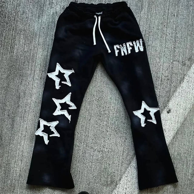 กางเกงวิ่งขายาวผ้าเกล็ดปลาแบบวินเทจปักลาย