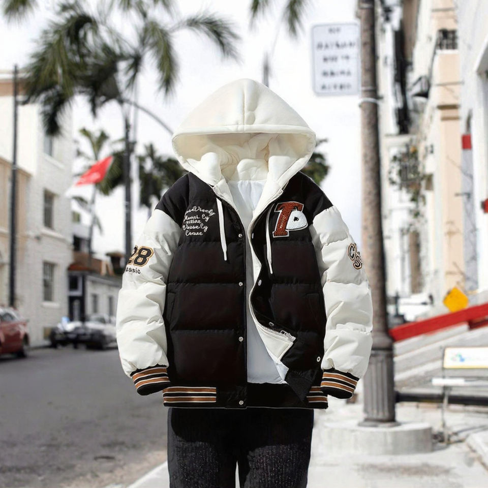 เสื้อโค้ทขนเป็ดมีฮู้ดของผู้ชายเสื้อโค้ทขนเป็ดมีซิปด้านหน้าให้ความอบอุ่นระบายอากาศได้ดี6XL ฤดูหนาว