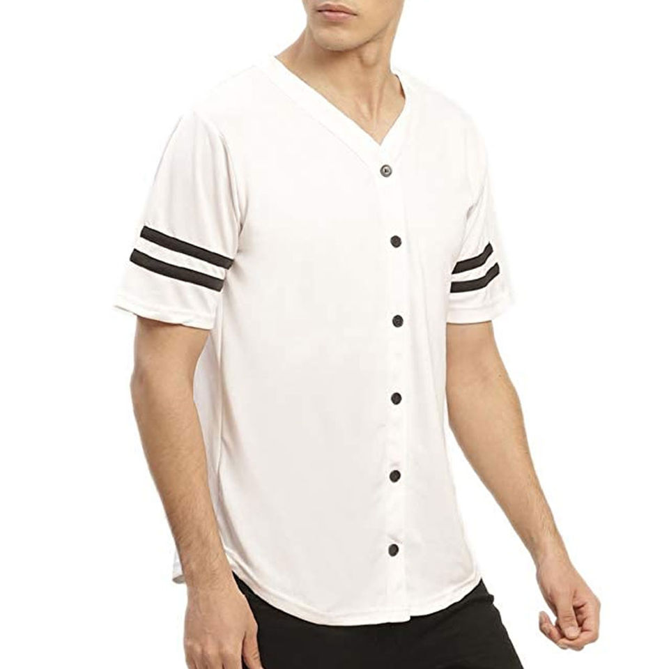 เสื้อเจอร์ซีย์เบสบอลสำหรับผู้ชายเสื้อเชิ๊ตแขนสั้นมีกระดุมเสื้อเชิ๊ตเบสบอลออกแบบได้ตามต้องการ