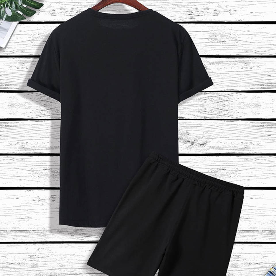 ชุดฤดูร้อนของผู้ชาย OEM ชุดเสื้อยืด2ชิ้นกางเกงขาสั้นสำหรับผู้ชายเสื้อผ้าฤดูร้อนตามสั่ง