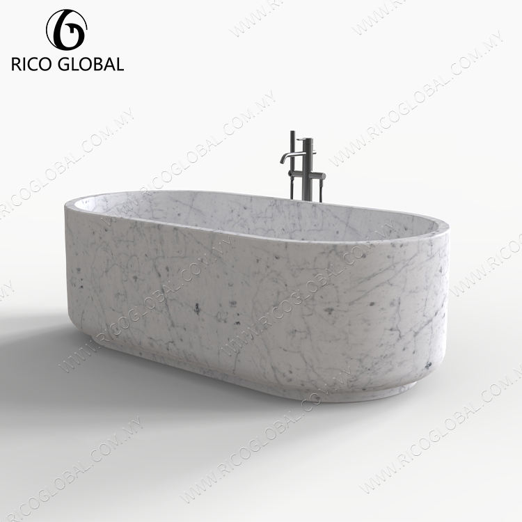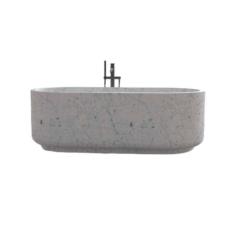 อ่างอาบน้ำหินอ่อนสีขาว Carrara แบบตั้งได้หรูหราทันสมัย