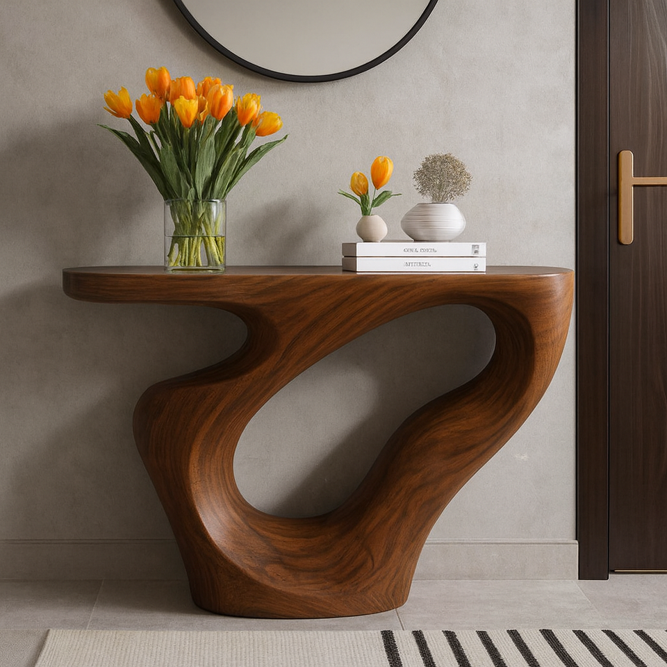 โต๊ะคอนโซลไม้เนื้อแข็งสไตล์โมเดิร์นรัสติก งานแฮนด์เมด โต๊ะทรงแคบ เหมาะสำหรับโรงแรม ทางเข้าบ้าน อพาร์ทเมนท์ ห้องนั่งเล่น